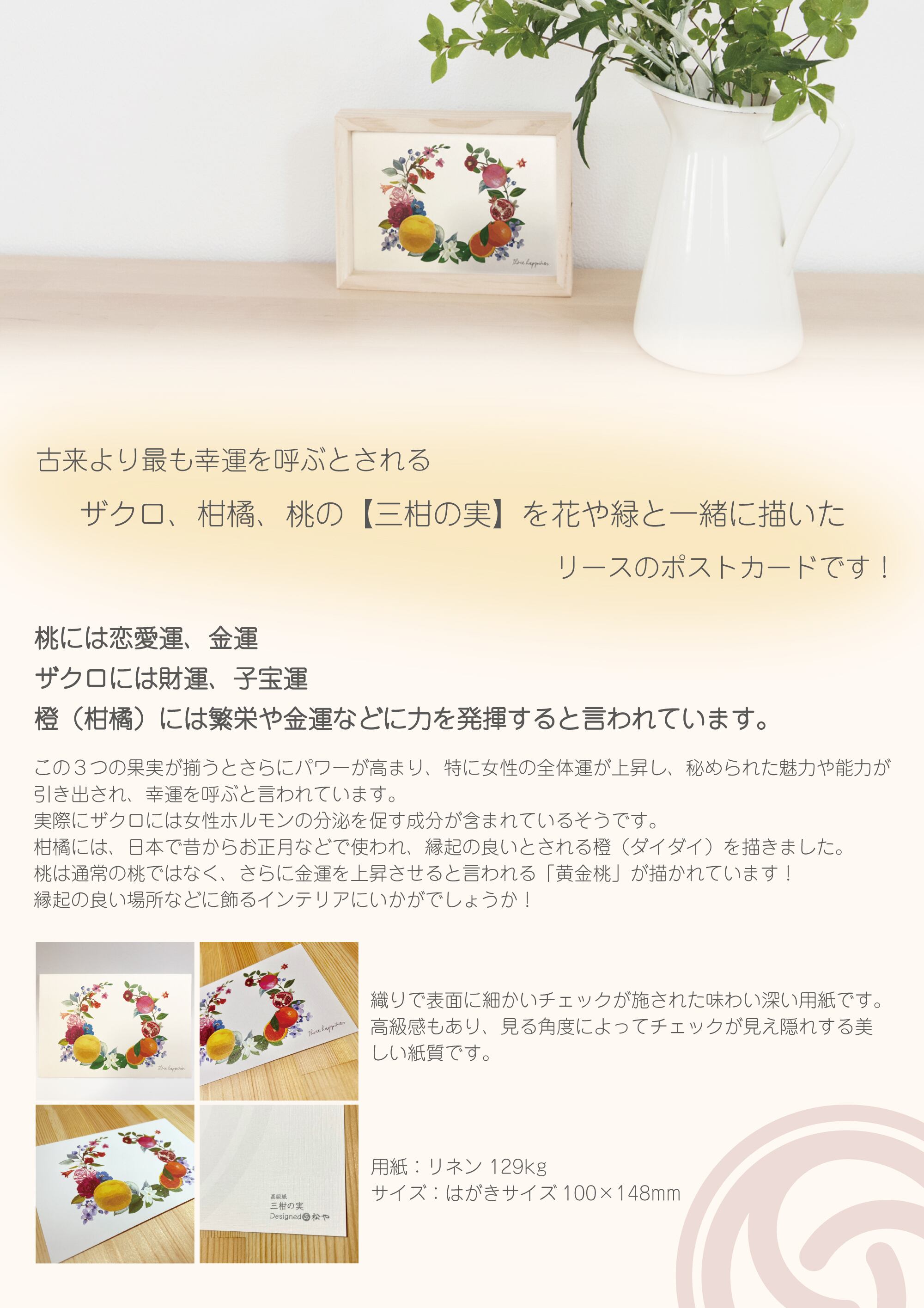 ②高級紙ポストカード「三柑の実」